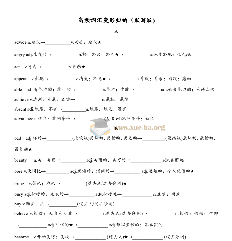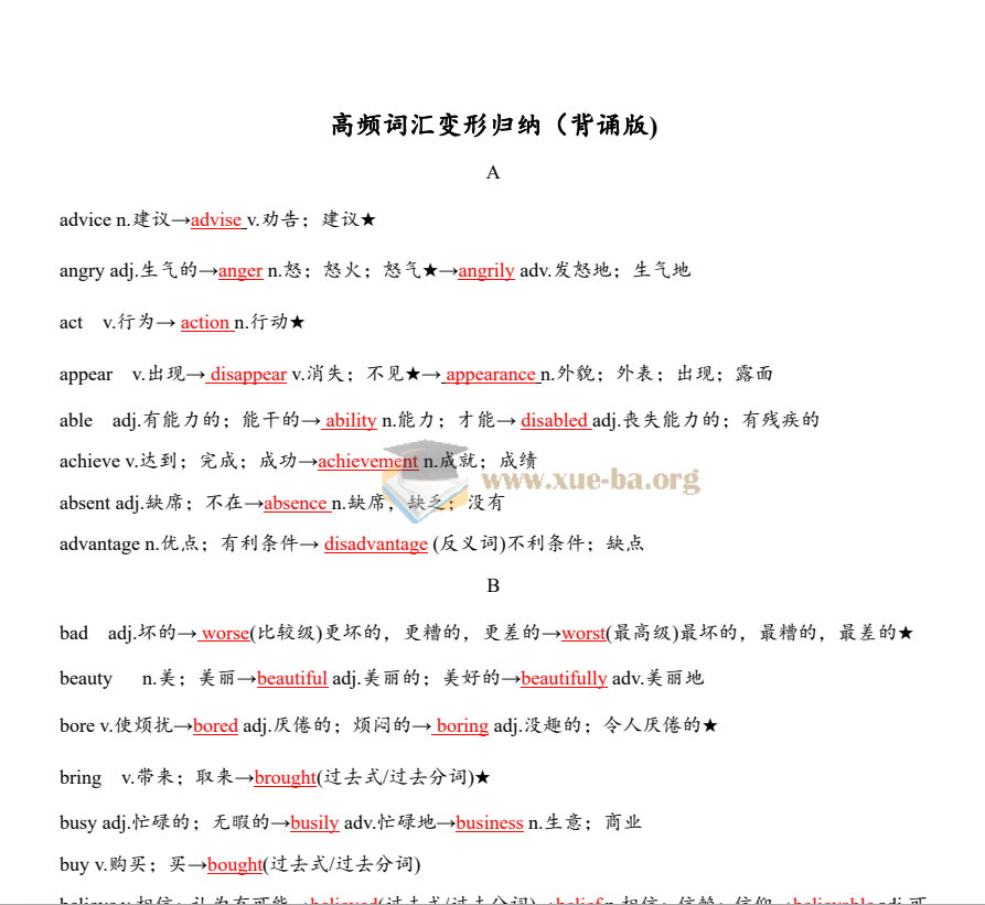 中考 英语高频词汇变形归纳