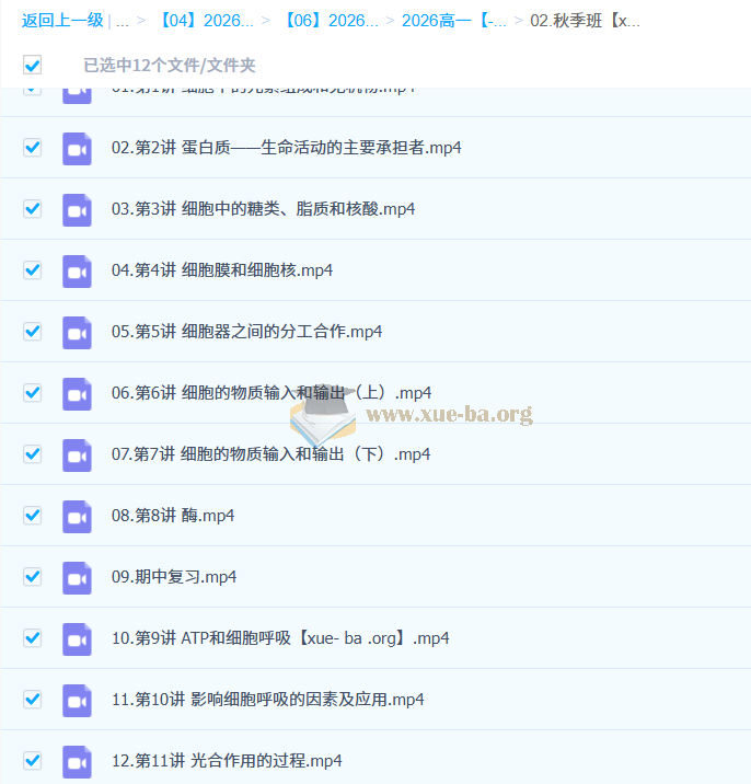 周云 2026高一高中生物 一轮暑假班 秋季班 更新中