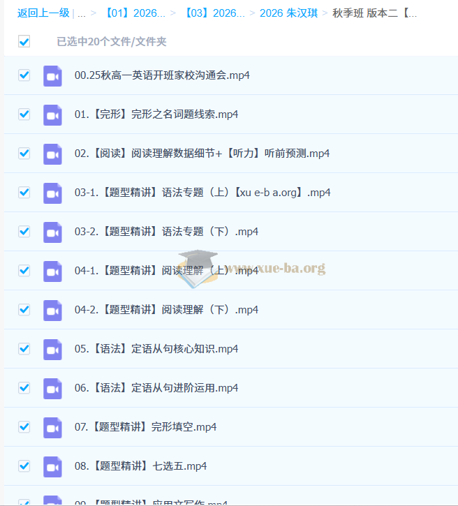 朱汉琪 2026高一 高中英语 暑假班 秋季班 更新中