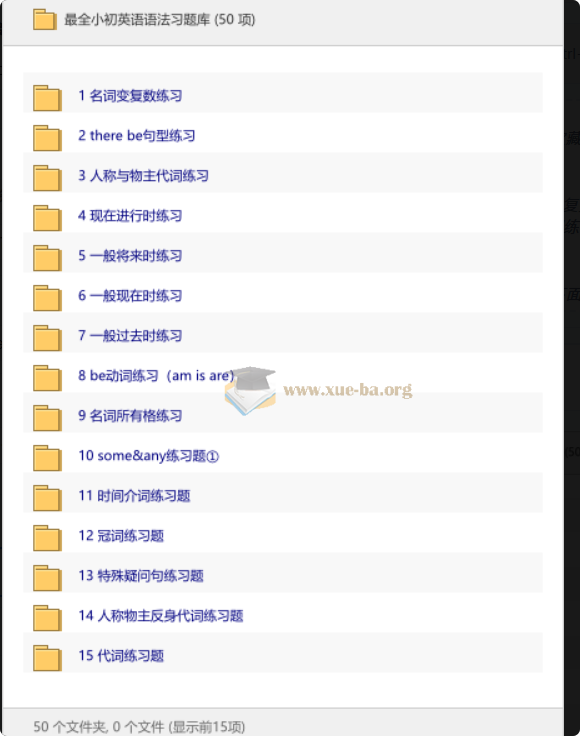 整整50+份练习,名词复数、时态、代词、介词……**考点直接圈好分类**,哪块薄弱练哪块!省下大把翻书找题的时间,刷完直接上考场不慌🔥